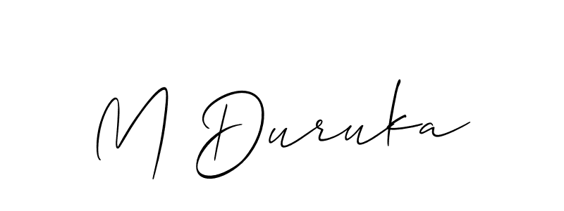 Use a signature maker to create a handwritten signature online. With this signature software, you can design (Allison_Script) your own signature for name M Duruka.